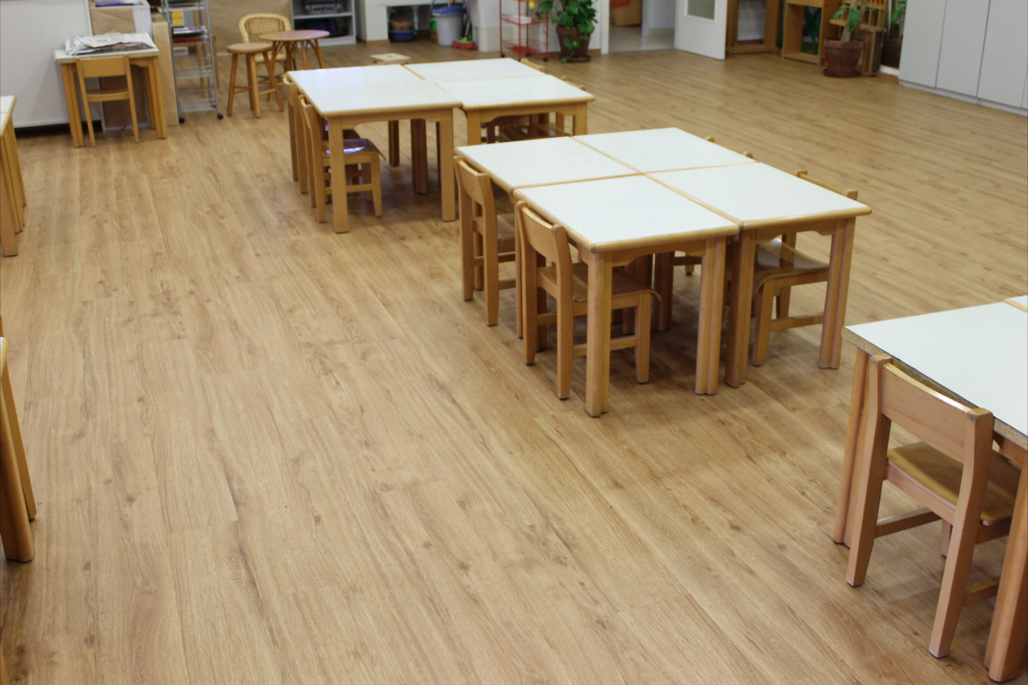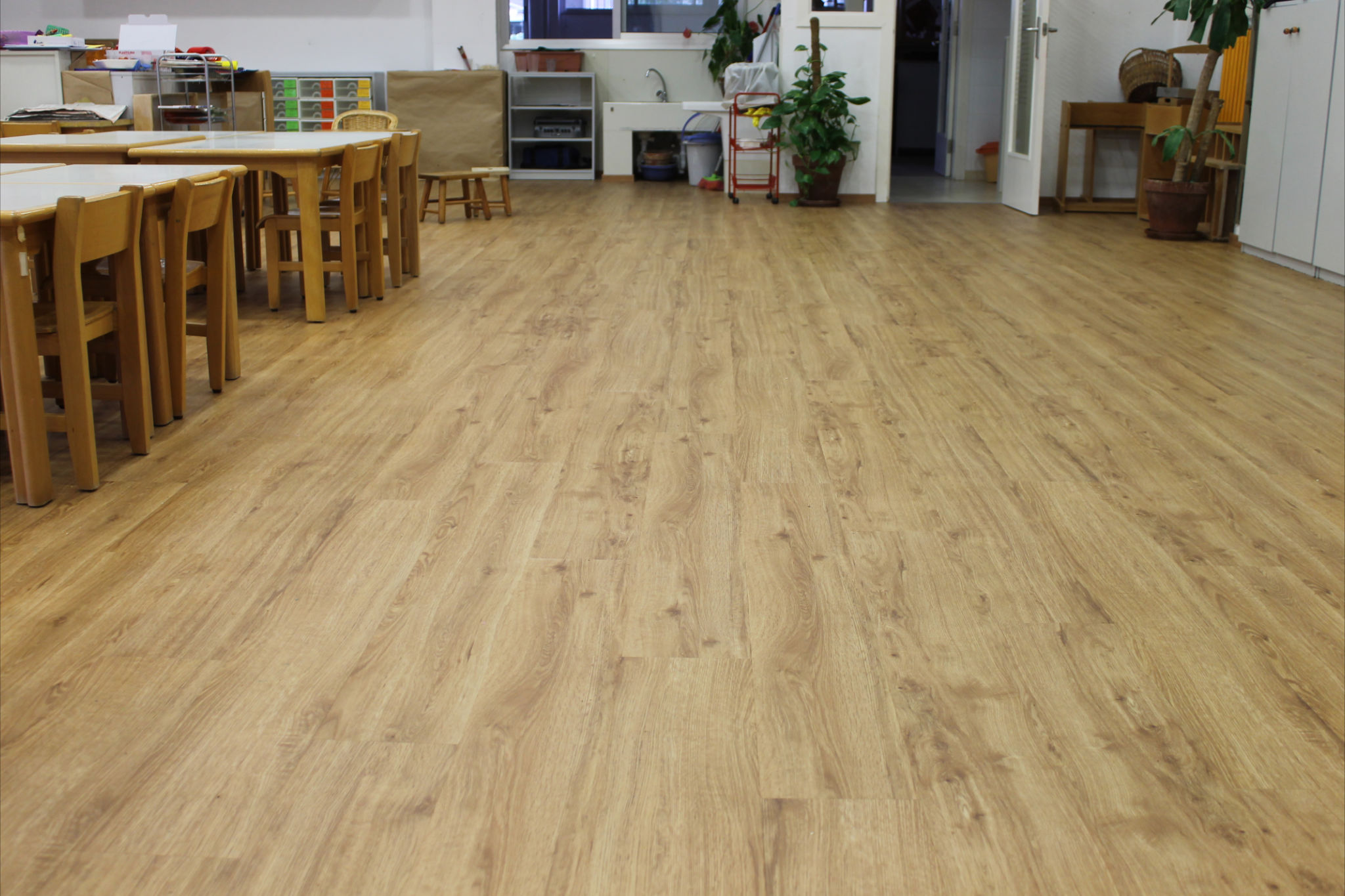 Instalación de 600 m2 de un pavimento de PVC Liberty Clic referencia Gris Taupe 5565-05 en el colegio privado Montesori i palau (Girona)